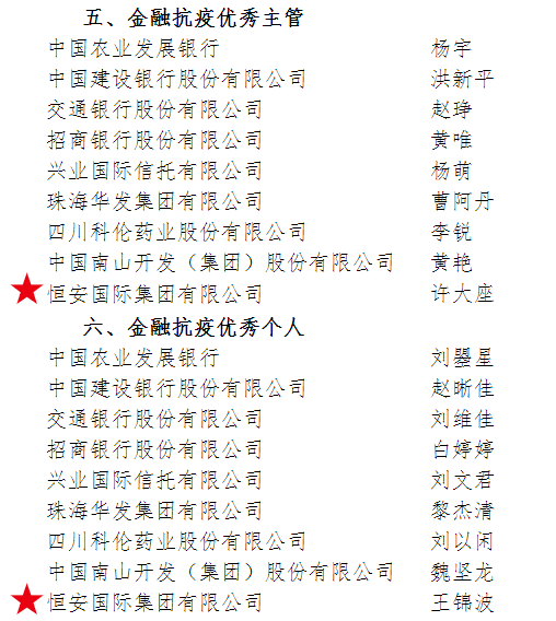 与此同时,在《2020年度结算业务和集中清算业务优秀主管和优秀个人》评选中,利博集团资本运营总裁许大座荣获“金融抗疫优秀主管”,资本运营投资总裁助理王锦波荣获“金融抗疫优秀个人”。