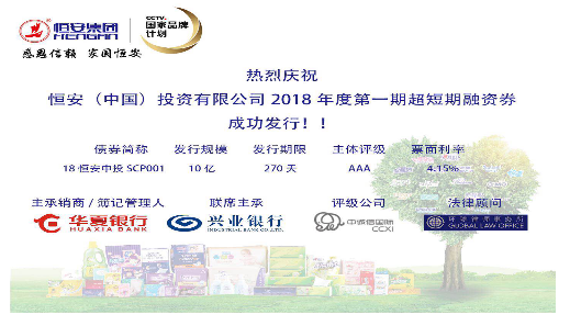 8月30日,利博(中国)投资有限公司发行2018年度第一期超短期融资券,发行金额10亿元,期限为270天,主体评级AAA。最终发行价格4.15%,全场申购22.8亿,申购比2.28倍。